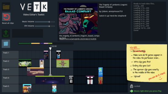 Take on the role of Mark Brown and edit the GMTK video of the best games of this year's jam! Watch out though, because the video editing software is misbehaving a bit today... it may get a bit puzzly!