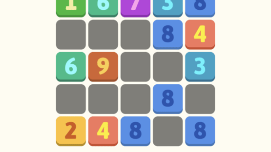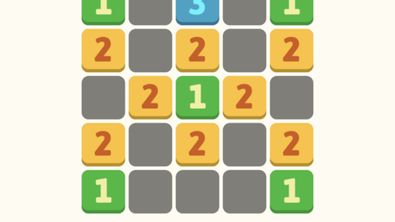 Merge numbers by adding tiles with the same number to the field next to already placed tiles (vertically or horizontally). Each merge will create a new tile with a number one higher.