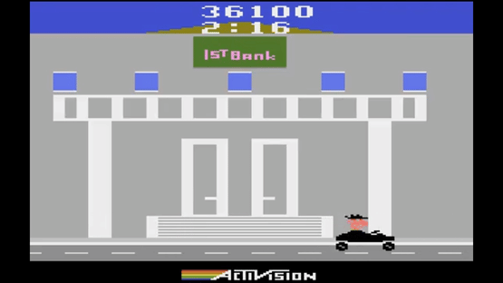 You choose from five different cases to work, each with its own requirements. For example, the first case, "Safecracker Suite," requires you to locate the gun used in a crime and have it verified at the gun store, then locate stolen money and return it to the bank and then capture Henri Le Fiend and turn him into the police station. You have only a limited amount of time before the statute of limitations runs out and Henri Le Fiend gets away. Hindering your investigation are a number of obstacles, including potholes, falling objects, unfriendly animals, and knife-throwing thugs, to name a few. You drive around the city in your modified 1935 Model A, which can jump as high as two stories. It can also make 90 and 180 degree turns on a dime. When you make the car jump, you also launch yourself out of it, enabling you to nab suspects in upper story windows.