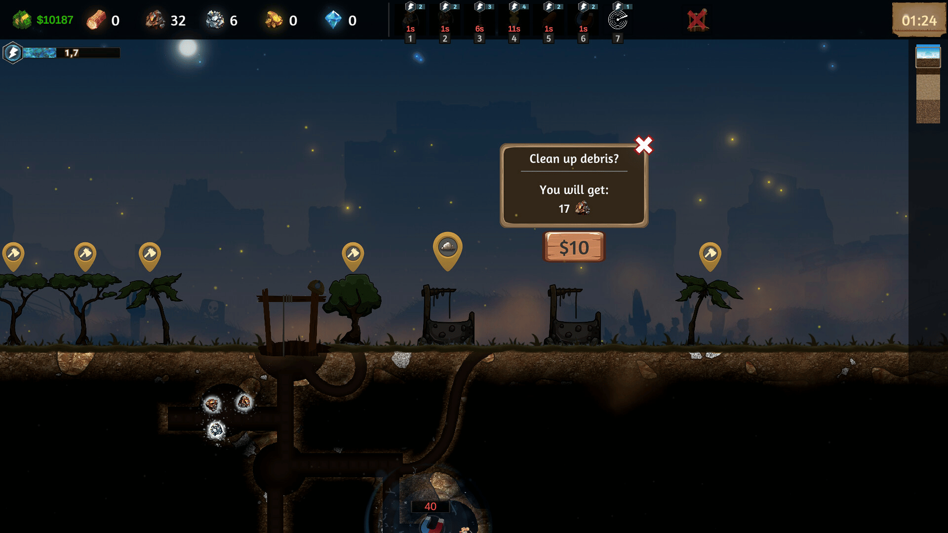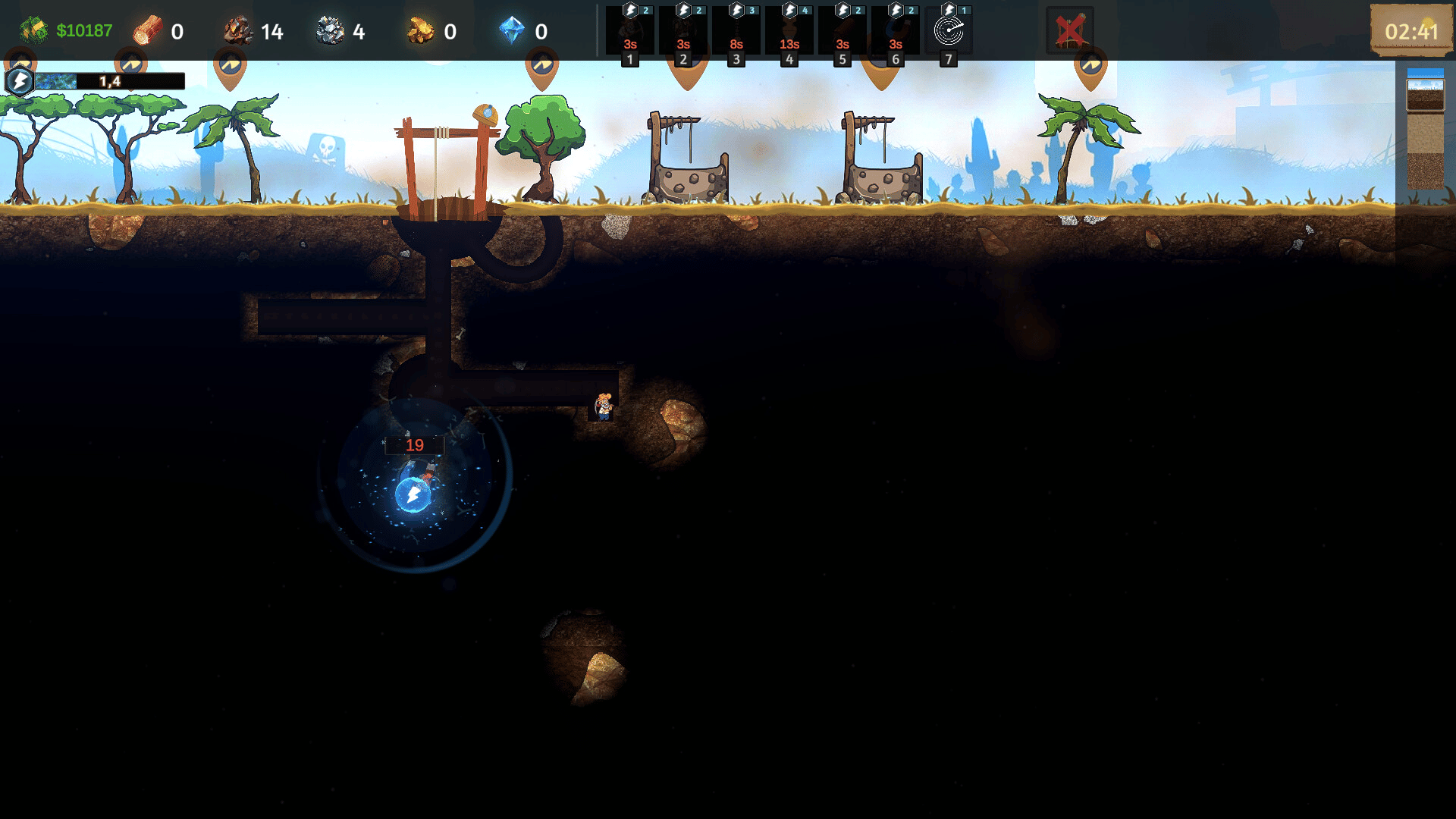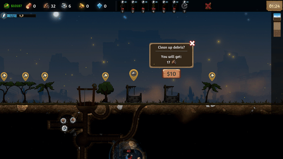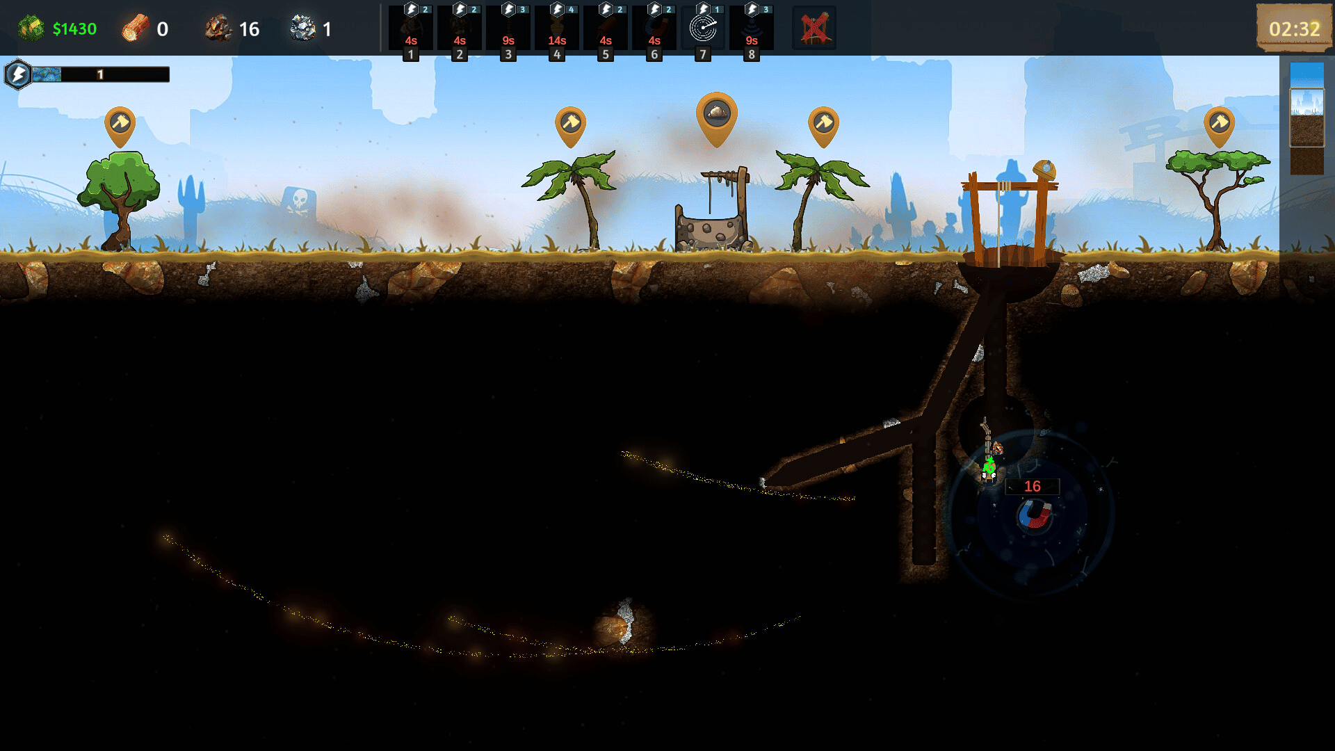 TerraForge is a mining simulation game mixed with a bit of shop management. You dig for ores, craft items, research new blueprints, improve your shop, sell your items and slowly grow your own little mining town.