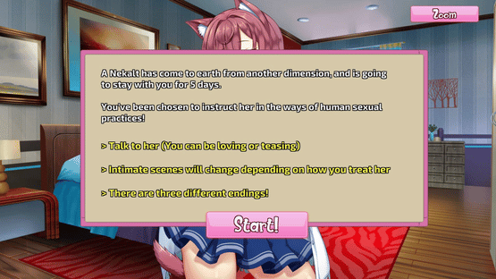 From another dimension, a strange and very cute catgirl visits you. She is very curious how sex works in this dimension and she has chosen you to teach her all about it!