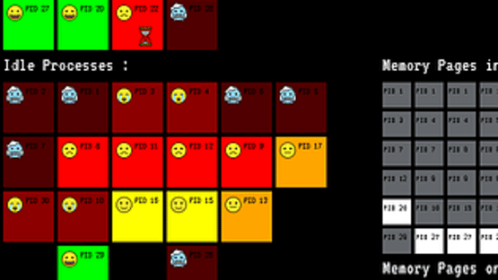 Do you sometimes get frustrated at how slow your computer's operating system can be? Now is your chance to prove that you could do a better job! Behold the nerdiest game ever, in which YOU are the operating system! As such, you have to manage the computer's processes, memory and input/output events, and try not to get rebooted by an impatient user. Good luck!
