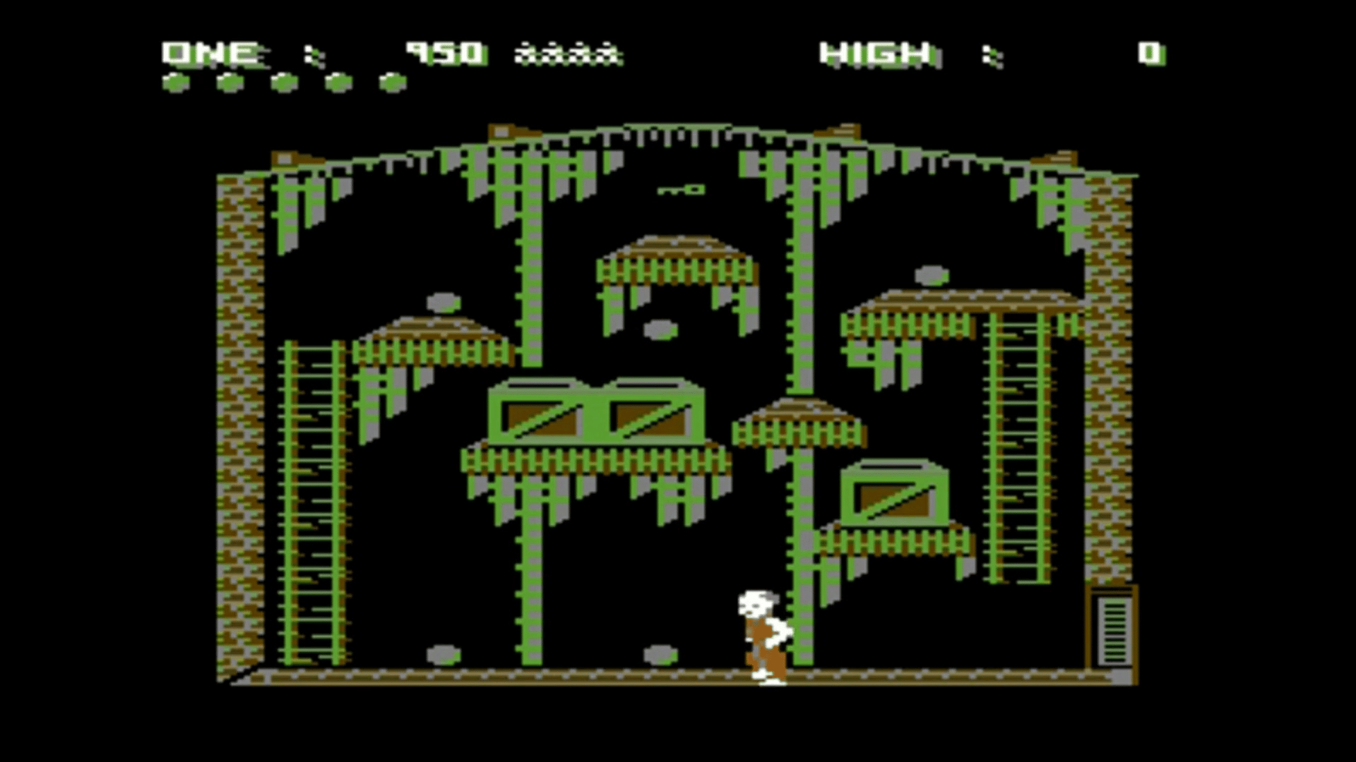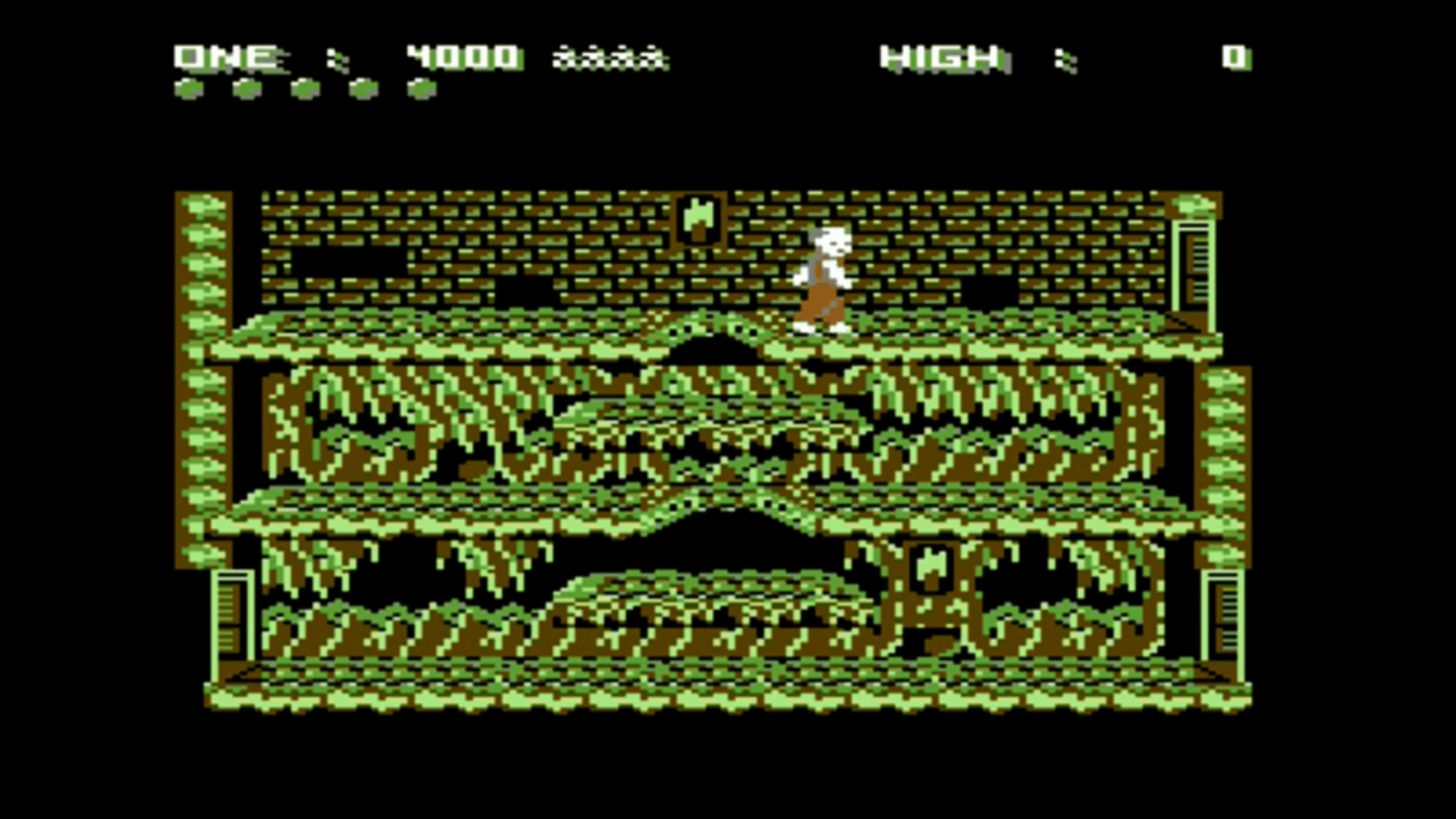 Harry the Ghost Chaser enters the haunted Fairport Manor and wants to drive out the ghosts that settle in that place. You control Harry on his mission. The game features sixteen screens that Harry must traverse: the attic, the kitchen, the library, the sewers and more. Ghosts roam the corridors and must be avoided or jumped over. The first few times Harry is touched by a ghost, he is not killed immediately, but merely immobilized from the shock. But further attacks from ghosts and also high falls may kill him. Thankfully Harry can defend himself and throw stones at some of the ghosts to kill them. The doors to the next rooms are often locked, so Harry must find keys to open them. The game can be played by one player or two players taking turns.
