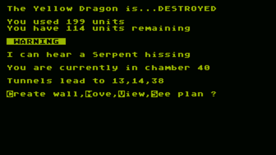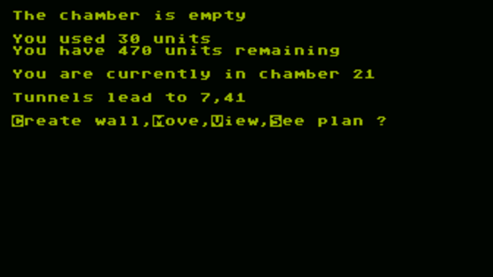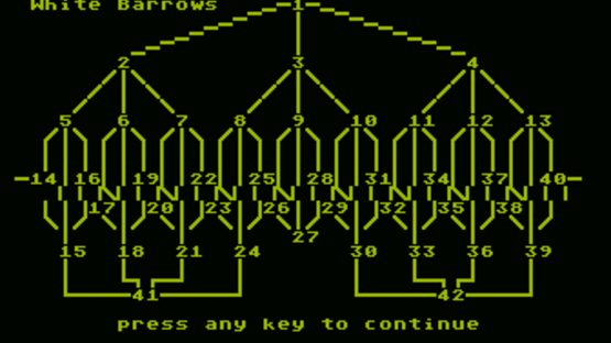 This is a text based game that has elements from a multiple genres dungeon crawl, puzzle, logic challenge, and even resource management. The back story is about a bad wizard who's stolen a magic chalice and you play the plucky adventurer who has to get it back. The bad guy is hiding in the ancient burial grounds, or barrows. The game is based on a map of the barrows in which there are 40 or so rooms. You are dropped randomly into a room. In other rooms are gnomes, trolls, dragons etc and in one room is the wizard. The game is played by moving from room to room exploring. You may view connecting rooms. You may raise a magic wall in an adjacent room. However you have only 400 magic points and viewing or raising a wall costs points so it's important to find the wizard before points run out. The game is a text game. There is only one graphic which is the map that shows how the rooms are connected.
