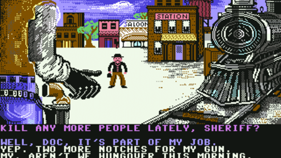 The West is out of control and a new sheriff is in town. As you wander through the dusty streets of this cowboy town keeping law in order, you are encountered by many characters ranging from gunslingers to the ladies. You must use your conversation skills to get through each character and if that's unsuccessful, you may have to use your quick draw skills and lay the law down.