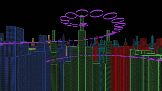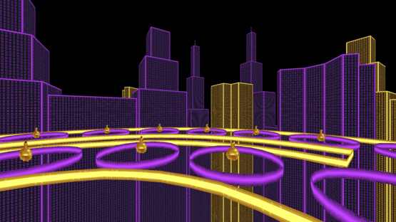 Short, if a bit tricky, map with nothing but neon skyscrapers, transparent platforms and setpiece fights.