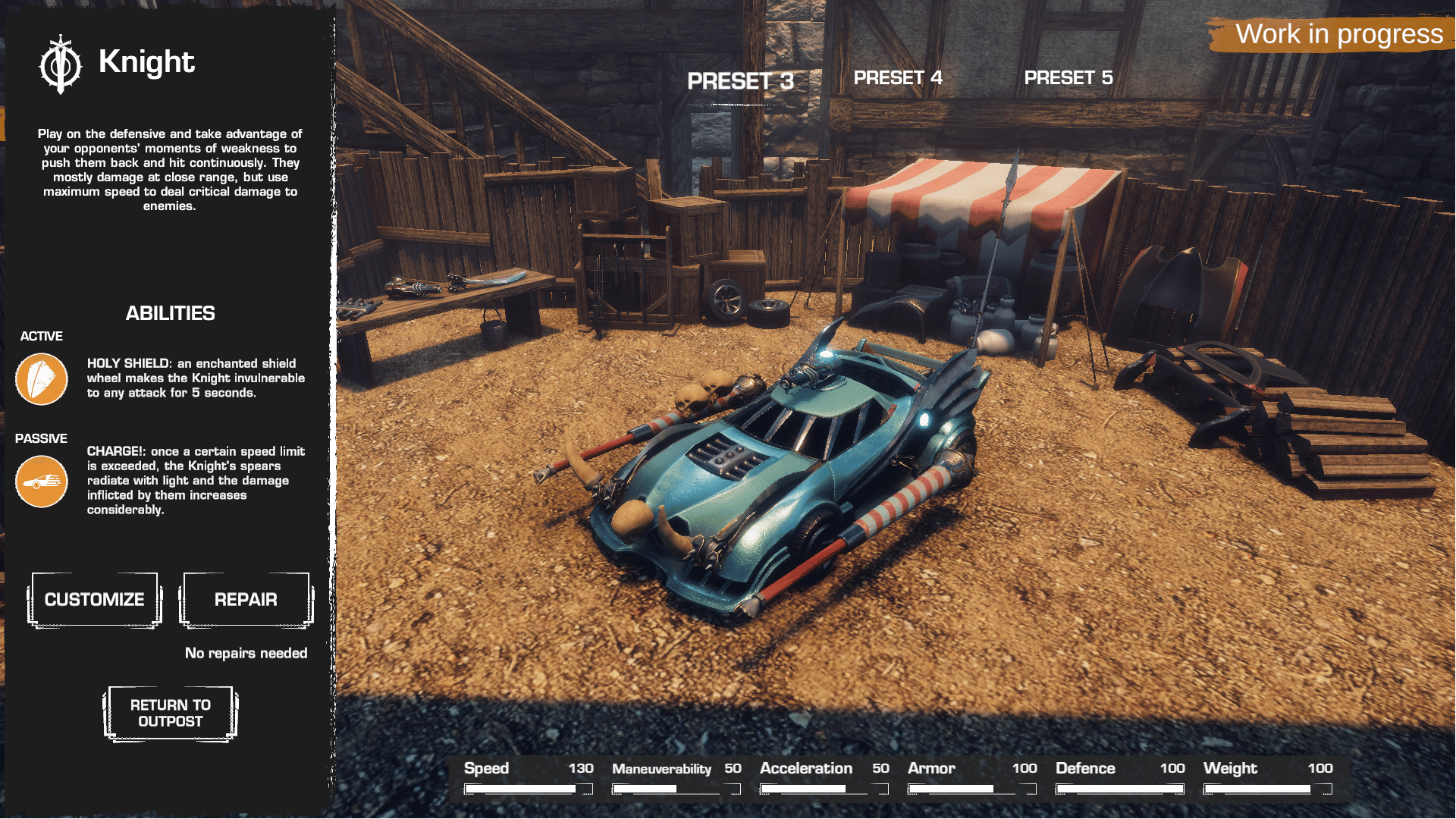 Choose your class vehicle, customize it with deadly weapons and conquer your place in the world. War of Wheels is a frenetic car fighting game in an original “medievalpunk” setting. Ride your iron steed and become a legend.