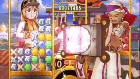 A competition puzzle game which features three types of falling objects that must be color-matched in groups of three.