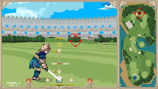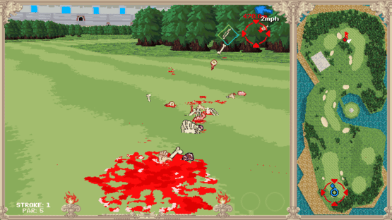 Blood Golf is a PVP or PVE golf-em-up where your target is the other player. Use powerups, map knowledge, and, most importantly, elegant combat-golf technique to turn your enemies into a fine mist or send them past the stratosphere. Has local multiplayer, or you can fight against the CPU.
