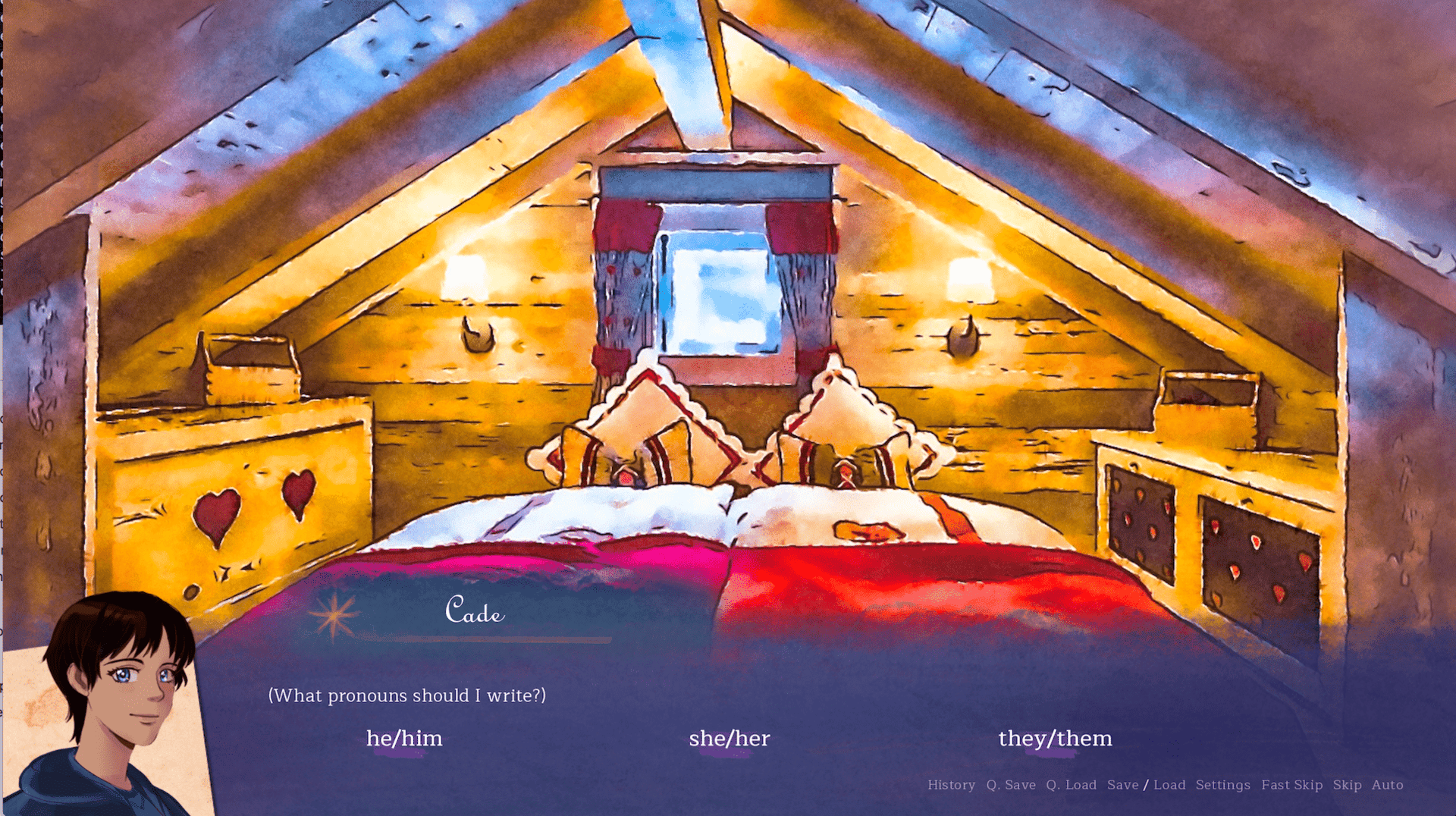 "What if when you wished for something, someone answered?" Snow Angel is a heart-warming love story between a human and an angel involving fluff, baking and falling snow. Pick your own pronouns and experience a charming tale within the alps.