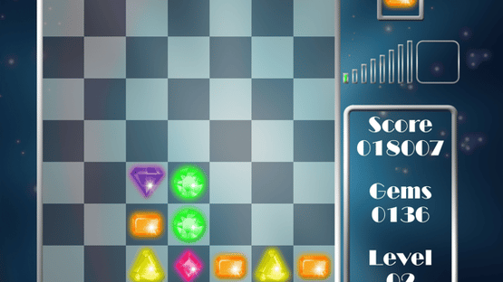 The point of this game is to match a line or diagonal of three or more gems, using columns of three pieces falling into the playing field and to get as much points as possible. At the end of each level, a column of bomb blocks appear and whatever color gem it touches, all of them disappear. This special column also appears when you press the bomb button that is available after the Power-up Bar is filled up. The background changes between levels and the columns move gradually faster. If you lose the game the playing field will be filled in with exploding bombs. Test how good you really are and try to get all of the 23 Achievements. Some of them require real master control over the game. You need quick thinking, fast reflexes and good game strategy in order to score enough points to become "Gem Legend".