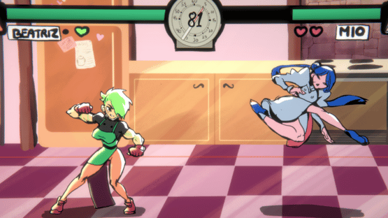 You're Cookin', Good Lookin' is a 2D fighting game! This game was created for Yuri Jam 2022. Mio and Beatriz are a married couple who, despite both being professionals in the cullinary industry, are fighting to decide who's cooking dinner tonight!