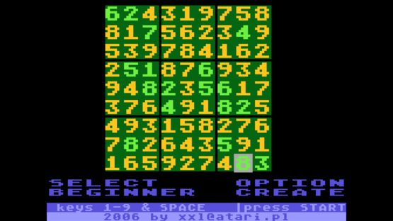 A homebrew game of Sudoku for Atari 8 bit systems.