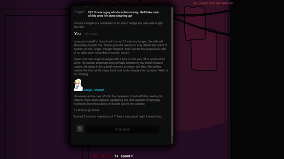 An interactive text narrative where charm, charisma, and seduction will be your key tools. Angel is an alluring and confident twink- each word, each glance, has deeper meanings as the two of you spend a fleeting night's tryst with eachother.