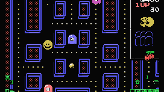 A certain round yellow guy, who’s probably the most iconic video game character ever, makes his entrance in ARC8’s recent MSX game called “PAC-01”. That’s right, it is Pac-Man himself that makes waves in the world’s fastest dot eating game. Combine Pac-Man with relentless vertical scrolling, and you get an interesting game concept. In PAC-01, your playfield scrolls from bottom to top, as pills are scattered around to be eaten. However, pills aren’t the sole item on the menu. The point of PAC-01 is that you advance a level when you had all six of the the spooky baddies for lunch – or dinner, whatever you prefer. Also, as is only befitting in a Pac-Man themed game, pieces of fruit will appear occasionally to serve as a refreshing snack which will increase your score. In this fine piece of Z80 entertainment, you hunt down the ghosts that escaped from the glitch; the deadly green computer bits at the bottom of the screen. This pool of game glitches also means instant death to our yellow little protagonist. So, don’t let those bits byte you! PAC-01 features a one and two player mode, as well as a “Fast Game” mode. Whereas the objective in the 1P mode is to munch up all of the ghosts, in 2P mode the player with the most points wins when the game is over (which happens when the maze ends). As for the Fast Mode it means… well, just survive!