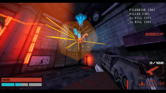 Gun fu action centered on three intertwined movesets for punches, ranged weapons and firearms. Fight your enemies through the gothic metropolis while using their weapons against them, in the most acrobatic way possible.