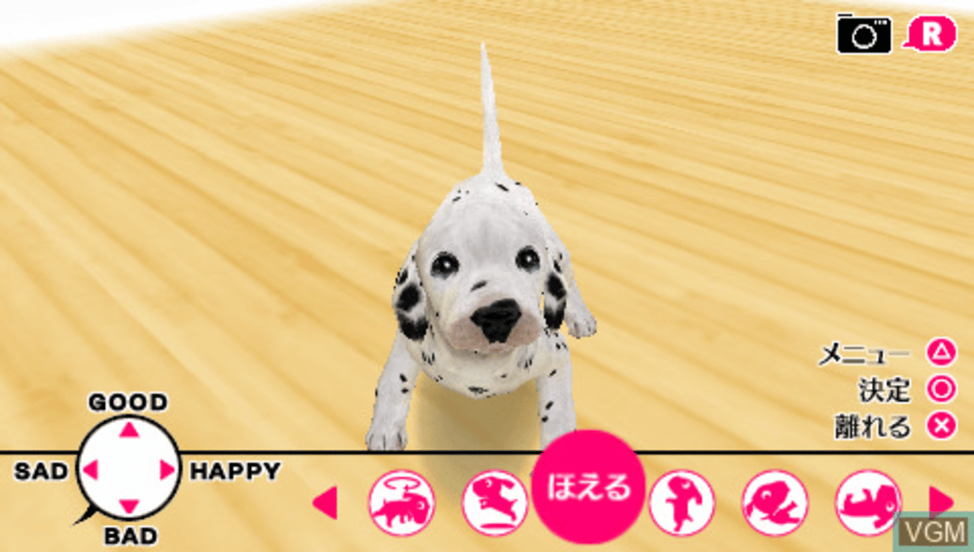 The game features realistic dogs that can be dressed up in accessories and photographed and played with in various ways. It was developed by Yuke's. The Dog: Happy Life is similar and is known to be compared to Nintendogs for the Nintendo DS. The game includes a feature that allows the player to take pictures of the virtual dog and share it on other devices like cell phones by transferring it to a PC. The game came out in April 2006 in Japan only. The format of this game is intended for a single player. The game type is considered to be a simulation, and is exclusive to the PSP console.
