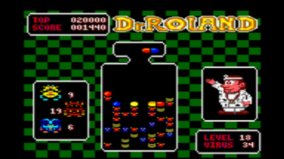 The patient is suffering a terrible virus infection, and your role as Dr.Roland is to get rid of those ugly and funky viruses, throwing them colored vitamin capsules. If four elements of the same color get together, all of them will disappear, and you will be one step closer to cure the infection. Dr.Roland is a tetrislike game that you can enjoy alone with your Amstrad CPC, or in a fun battle with a friend side to side.
