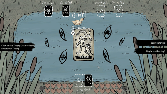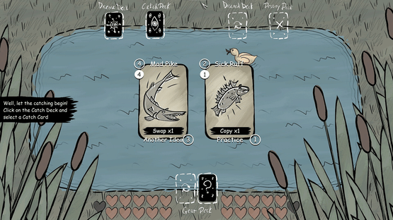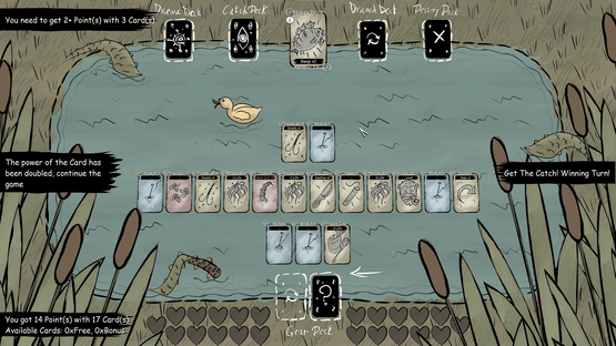 Welcome to the card fishing simulator! Time to clear the pond of monsters. Pick a target, build the Deck, and try your Luck! Oh, and don't touch the duck, okay?