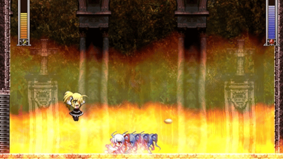 In Rosenkreuzstilette, the player takes control of Spiritia Rosenberg in traditional Mega Man fashion; navigating through enemy and trap laden stages, defeating the stage's boss at the end of each stage (in Rosenkreuzstilette's case, each of Spiritia's fellow Magi in the RKS) to copy their powers and using that very power against a boss who could be weak against it.