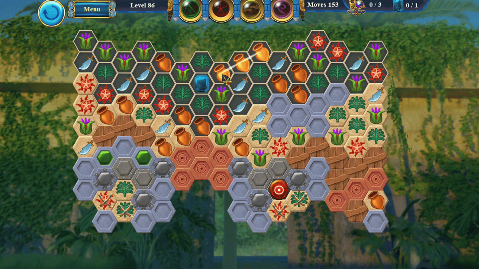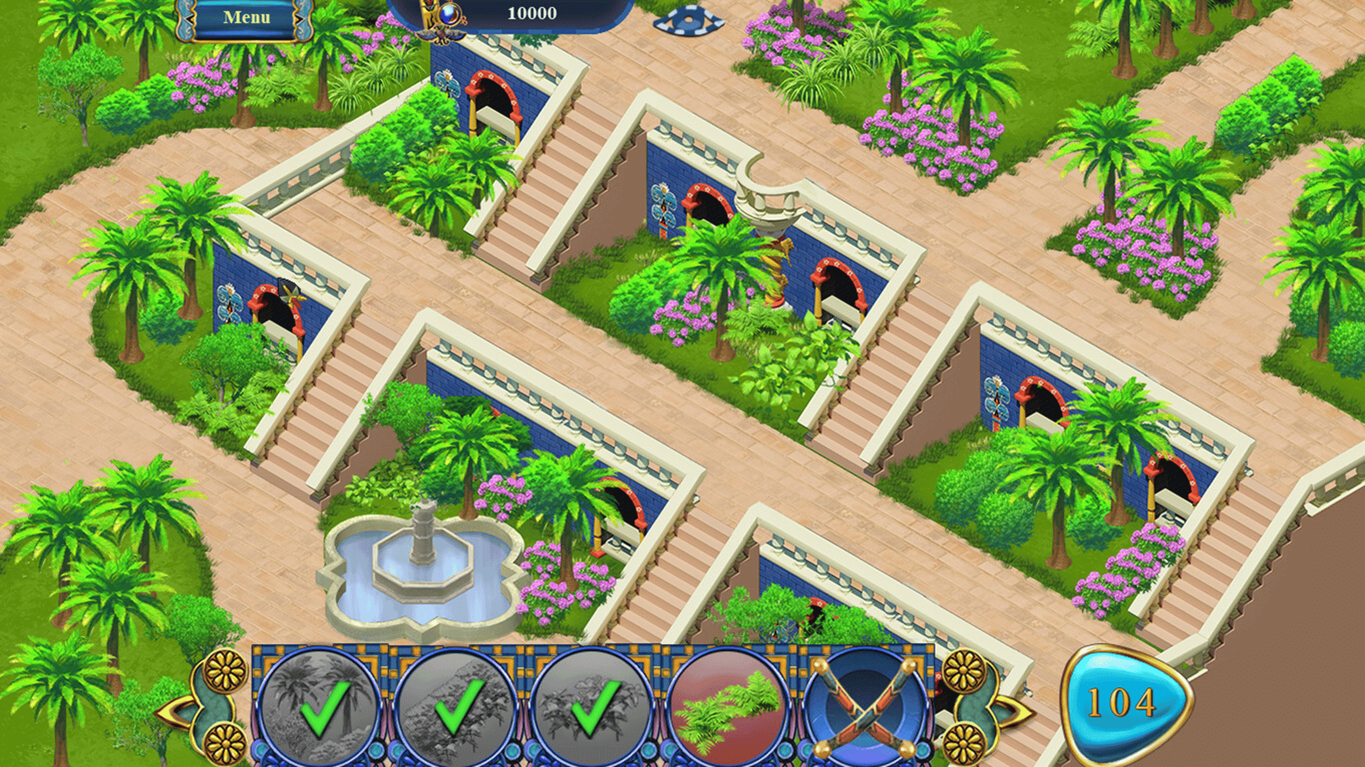 Play through more than 100 hex-match-3 link style levels and earn enough gold to fully decorate the Gardens of Babylon!