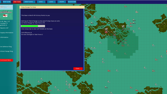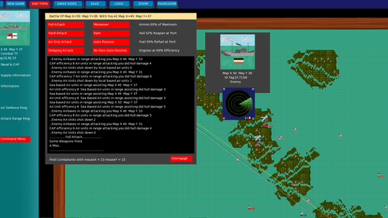 Naval Grid Based , turn based Hard core Wargame. A.I. can control any ship so no need to micromanage , it has a live database to find targets. there is a supply mechanic, all ships need supplies fuel and repair and rearming , transport ships and major base's supply everything.