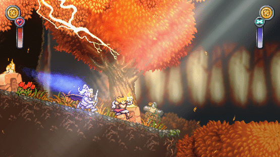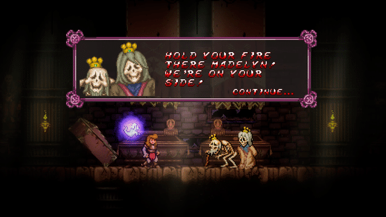 Battle Princess Madelyn is a game that follows the journey of a young knight in training, Madelyn, and her ghostly pet dog, Fritzy. They set out on a journey to save her kingdom and her family from the clutches of an evil wizard.