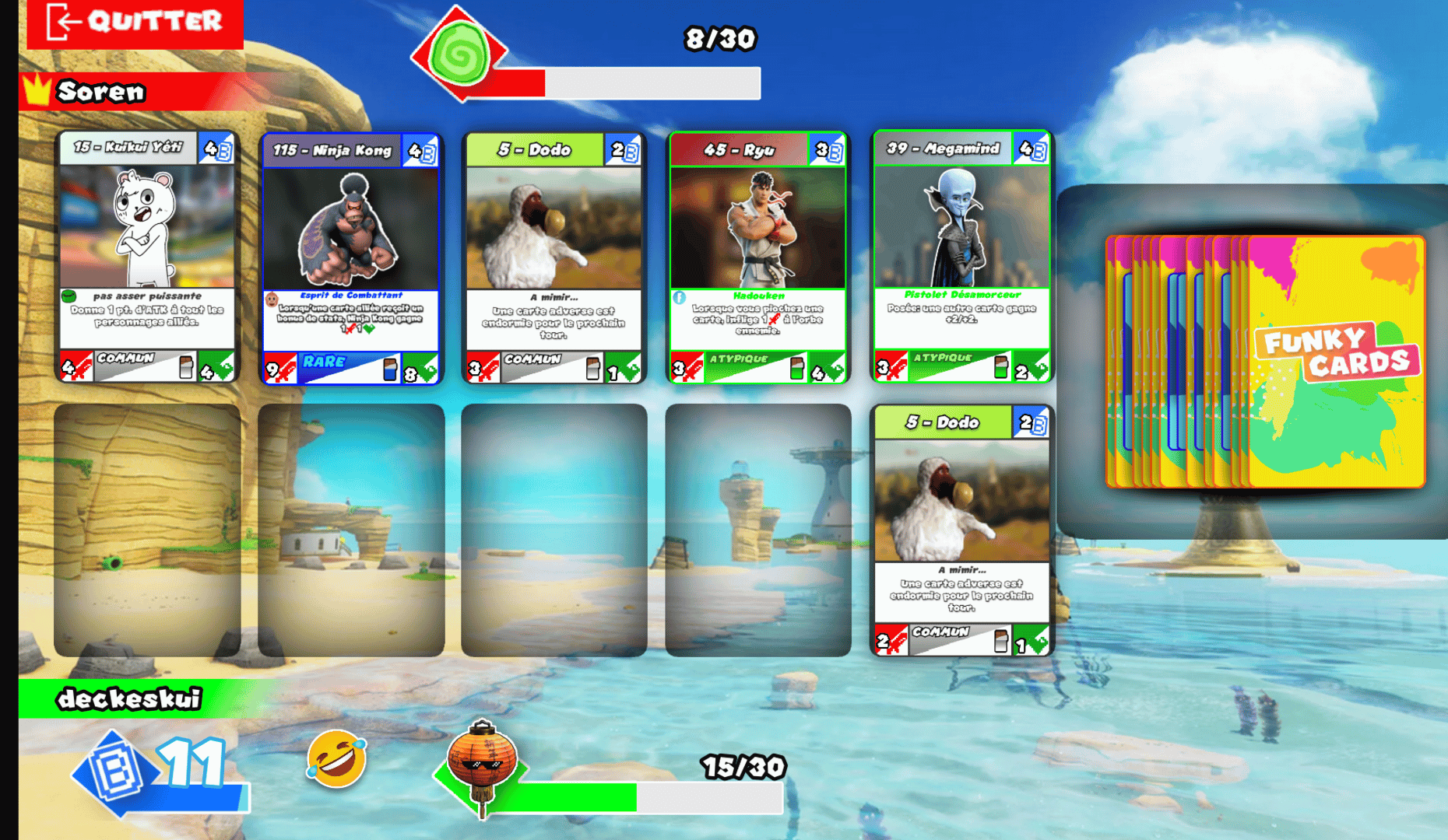 A deck builder game which consists of utilizing your cards to destroy the opposing orb. It is a large crossover of many franchises, you can make Garfield battle Neymar from Fortnite, Goku battle Dora and there are even original characters. You will be able to unlock them all in the Funky Packs.