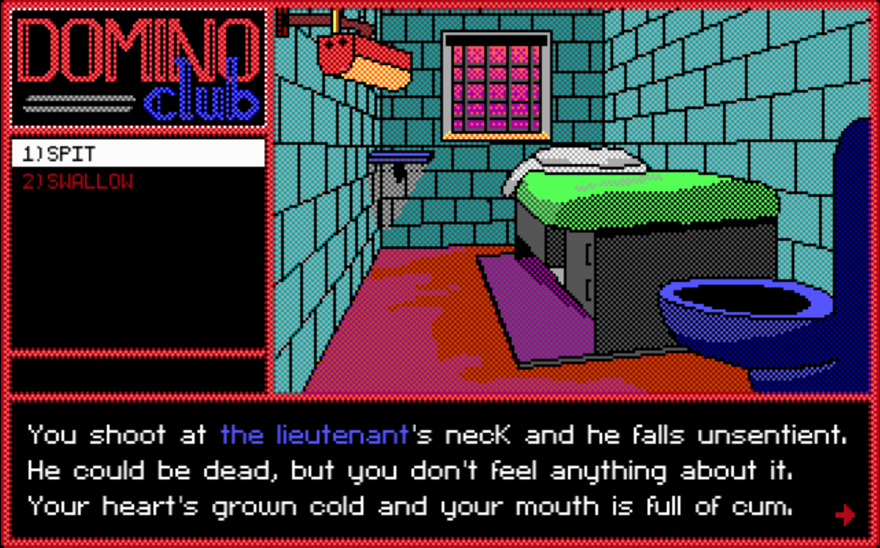 The eponymous Domino Club game is a pixel art, menu-driven visual novel where you play as a detective inspired by the game catalogue of the Domino Club group members.