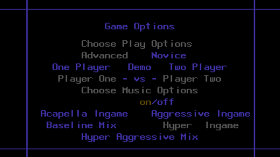 Hyper Aggressive is a strategic puzzle game aiming to provide some sensitivity for the binary numeral system. The playing area mainly consists of fields coloured in red or blue (the colours of the players) or grey (neutral areas). These fields are either numbered 0 or 1. The goal is to switch fields numbered 0 faster to 1 than your opponent does, using binary operands like EOR, ORA or AND. Since the game follows binary patterns, changing the value of one field will also affect the neighbouring values...
