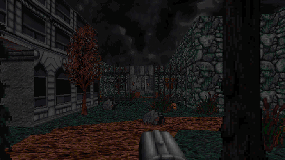 A single map that includes rotating doors, explosive walls ,respawning monsters, and more
