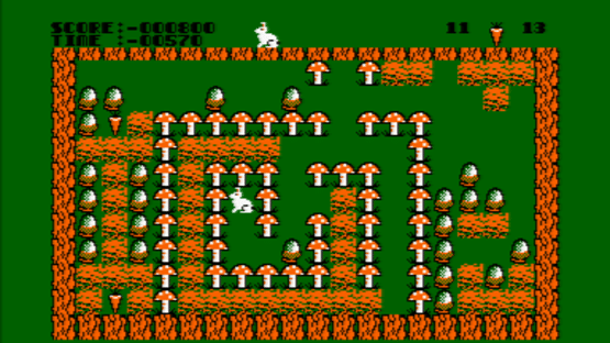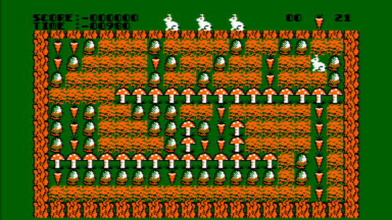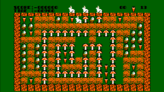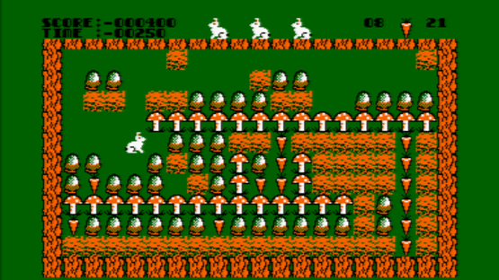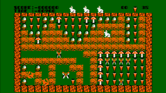Splatch! is a Boulder Dash clone originally released as a type-in program in the Amstrad Computer User magazine. You control a rabbit who must navigate underground levels to find carrots to eat. Digging through the dirt can release rocks which will fall and can crush the rabbit. There are other obstacles such as mushrooms and on later levels moving opponents which are deadly to encounter.
