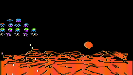 Monolithic Laser is a Space Invaders clone. The player shoots alien vessels to try to stop an alien invasion. The player controls a small space ship in the bottom half of the screen which can move in 4 cardinal directions. Moving left to right on the top half of the screen are the invading alien vessels, which fire randomly upon the defending player. If your ship is hit, it is destroyed. When the player has destroyed all ships, they move to a higher difficulty level with faster moving ships that fire more frequently. The player has a total of 3 lives. When all are lost, it's game over.