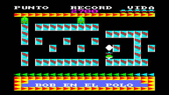 The objective of Bob en el polo is quite simple: eat a certain number of eggs in each of the 10 levels of the game, avoiding the enemies, in a limited amount of time. The player can also move the blocks on the screen, like in Pengo, but without the possibility to kill enemies. Blocks can only be moved for defensive purposes. The start level can be selected from the main menu.
