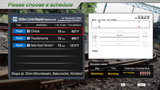 The Sobu Rapid Line is a 79.2 km long line running east-west between Tokyo Sta. in Tokyo's Chiyoda Ward and Chiba Sta. in Chiba City, Chiba Prefecture.The Sobu Line (Rapid) DLC can operate the section of the Narita Line from Sakura Station to Narita Airport Terminal 1 Station via Narita Station.