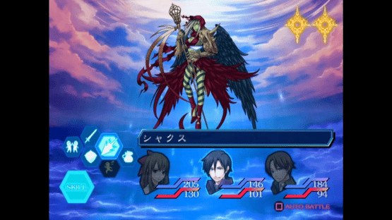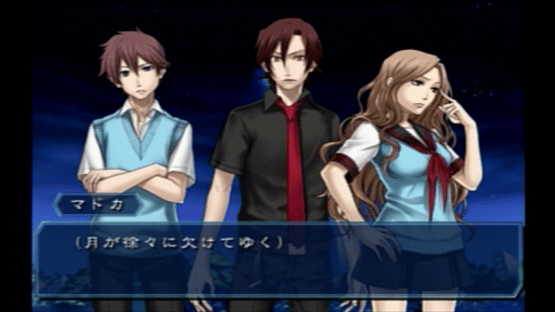 An infamous kusoge released in Japan for the PlayStation 2. Kamishiro Gakuen Maboroshi Kouroku Kuru NuGiA, often just shortened to "Nugya", is about a story that unfolds in both modern times and the Taisho era, surrounding the "Kamiyori" that occurs once every 100 years in the town of Jindai. The main characters, one in the modern era and one in the Taisho era, both help to fight against demons. Battles are turn-based, including a system in which you can use interchangeable skills. There is a "feeling system" that responds with "joy, anger, sadness, or pleasure" depending on the situation, but it has almost no relationship with the progress of the main game.