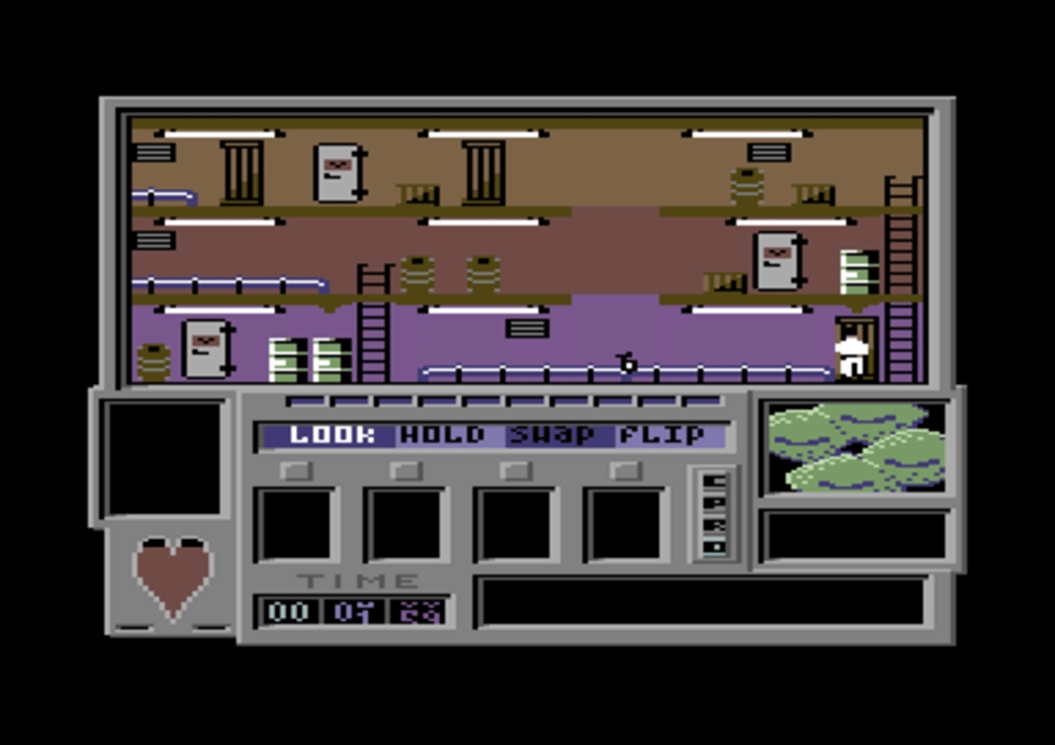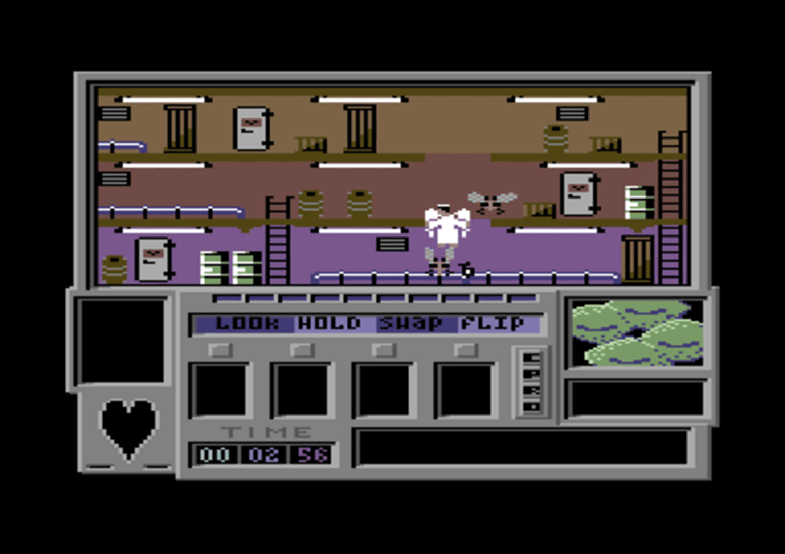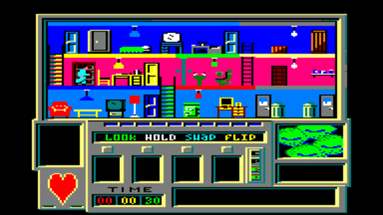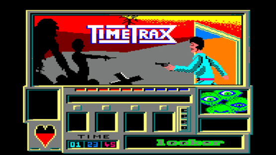 Time Trax is a sidescroller screen-by-screen action game where you pick up objects in order to find items which are found in each room that is connected by doors and ladders in order to seal portals.