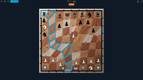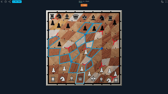 A game of chess set on a procedurally generated board, where tiles can have 3 or 5 diagonals and straight lines bend around your opponent's defenses. Same rules, different battlefield. Opportunities for new strategies are hidden in plain sight. Will you see them before your opponent does?