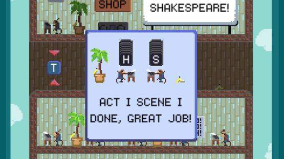 The goal of the game is to write the entire first scene of the first act of Shakespeare's King Lear, one random letter at a time. Monkeys will type letters at random until one hits the correct one, and each completed letter gets you $1. Use the buttons on the top floor to hire more monkeys and motivate the existing ones to work faster by buying posters and banana trees.
