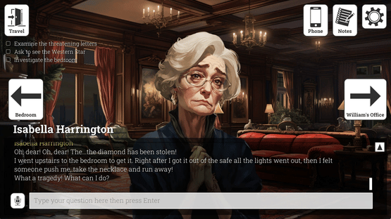 Cursed Diamonds is a small experimental mystery visual novel using AI. No more limited options and canned answers: you decide what questions to ask, using either text or voice. Grill the suspects, research the case and examine the crime scene, to solve the mystery and find the culprit.