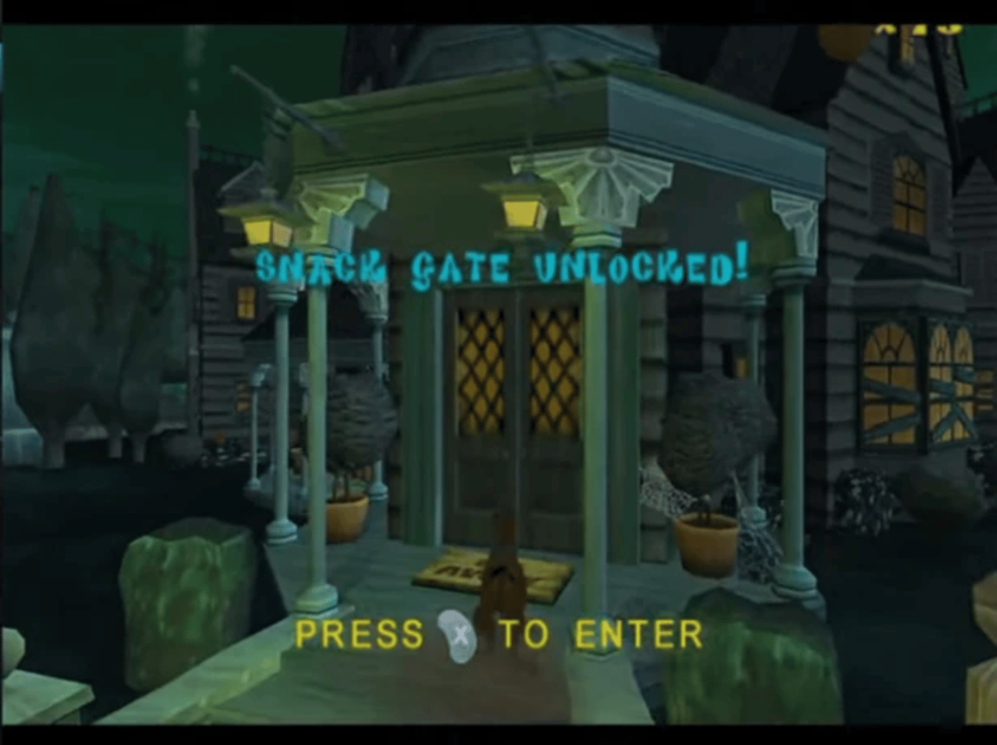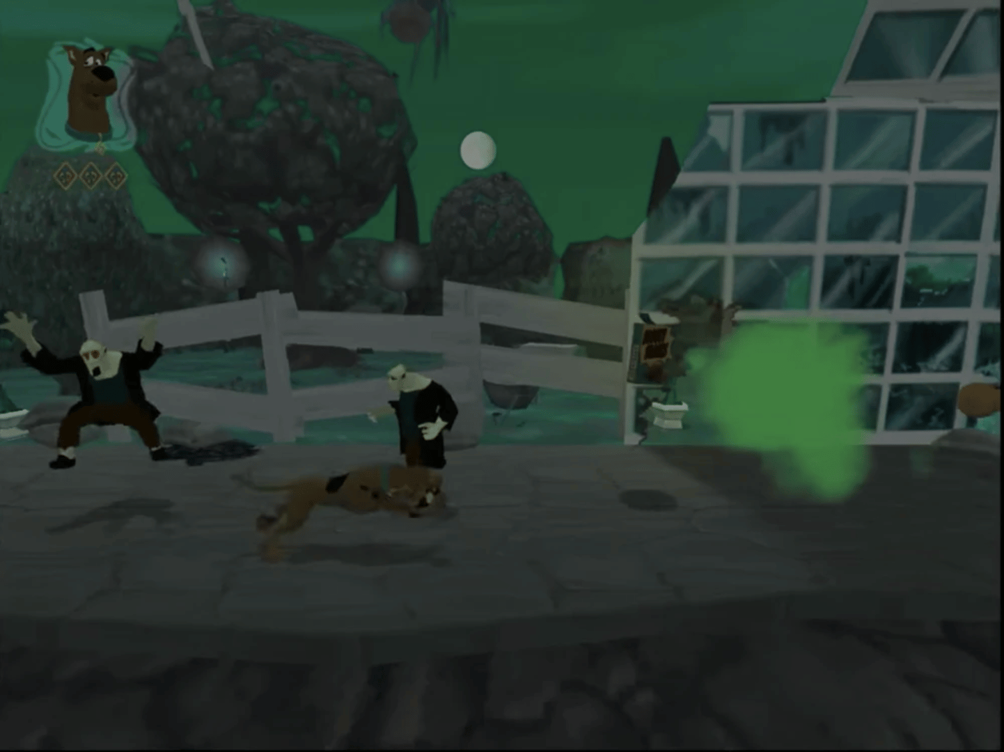 Scooby-Doo! Night of 100 Frights is a third person platform game with action elements that was developed by Heavy Iron Studios and published by THQ for the PlayStation 2, GameCube and Xbox consoles. The game was first released on May 20, 2002 in North America and was released later that year in PAL regions. It is the first Scooby-Doo! video game title to come to sixth generation consoles. The game became a Greatest Hits title in 2003.[1] The game had a follow up titled Scooby Doo: Mystery Mayhem. The game puts players in the control of Scooby-Doo in a story that revolves around him searching for the rest of the gang around a haunted mansion after they're kidnapped by an eccentric villain. The game has twelve areas, ranging from graveyards and secret labs to fishing villages and haunted mazes. The game received mixed reviews from critics, mainly criticizing the game's simplicity, although its massive environments staying true to the Scooby-Doo! universe was praised by critics and fans alike. Fans of the original show loved the game, feeling it was compensation for the N64 game released in 2000. The game also marks the first and only time Don Knotts did voice work for a video game, though he did do previous voice work in the Scooby-Doo universe.[2]
