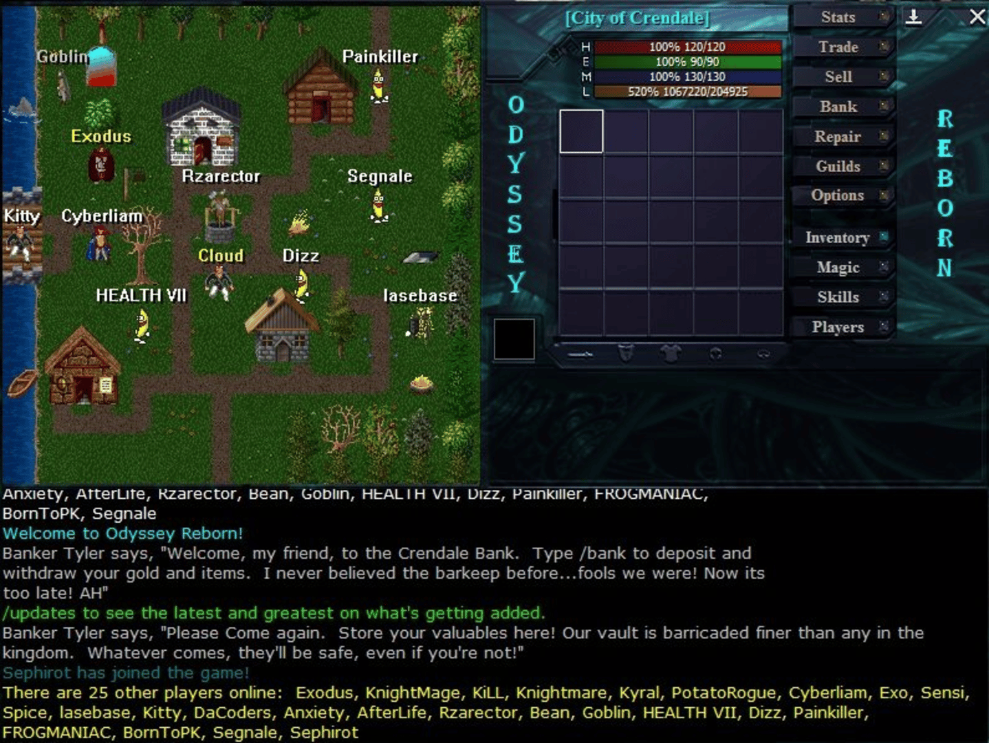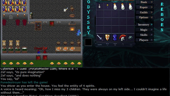 Odyssey Reborn is a free 2D isometric online RPG that is set within a medieval setting with SNES-like graphics. Based on the source code of "The Odyssey Online Classic Edition" by Bugaboo, Odyssey Reborn is a variation of the game that was released on Steam in 2015. The game was later made open source in April 2016 before the official servers were taken down and the game was delisted in April 2017.