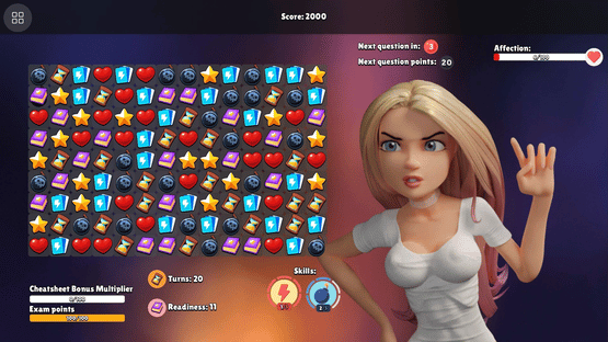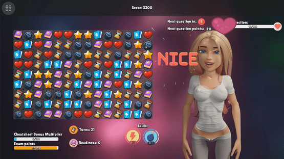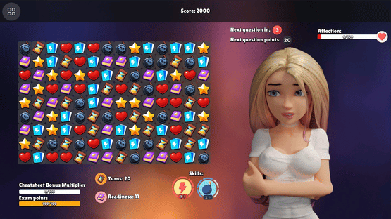 Brain Exam with Benefits is a lighthearted Match 3 game with Annie, a professional brain examiner who has a sexy side. Impress her with your smartness to charm her into submission, or pathetically fail.