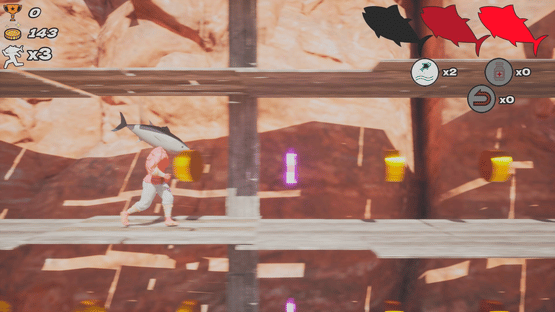 Maguro Macho Adventure is a platform game that is forced to move. Maguro Macho has to keep running to beat the stage and get oxygen. All stages are 5 stages.