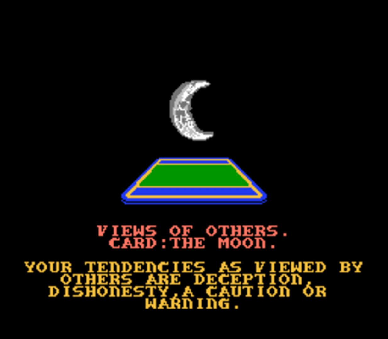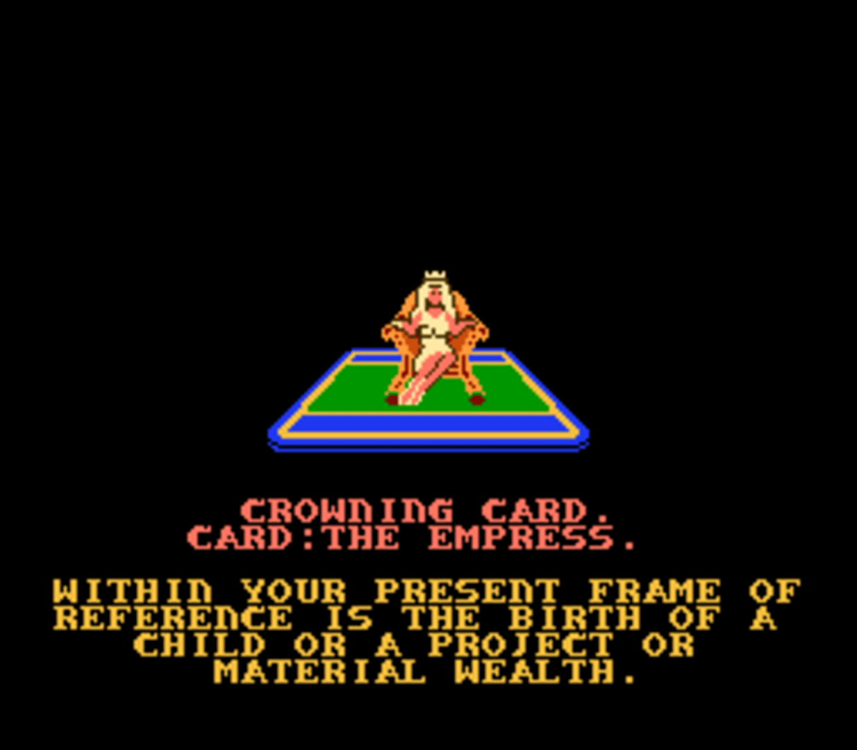 Taboo: The Sixth Sense is a tarot card reading simulation developed by Rare for the NES. This video game gives users a tarot reading where the "dealer" automatically shuffles the cards.