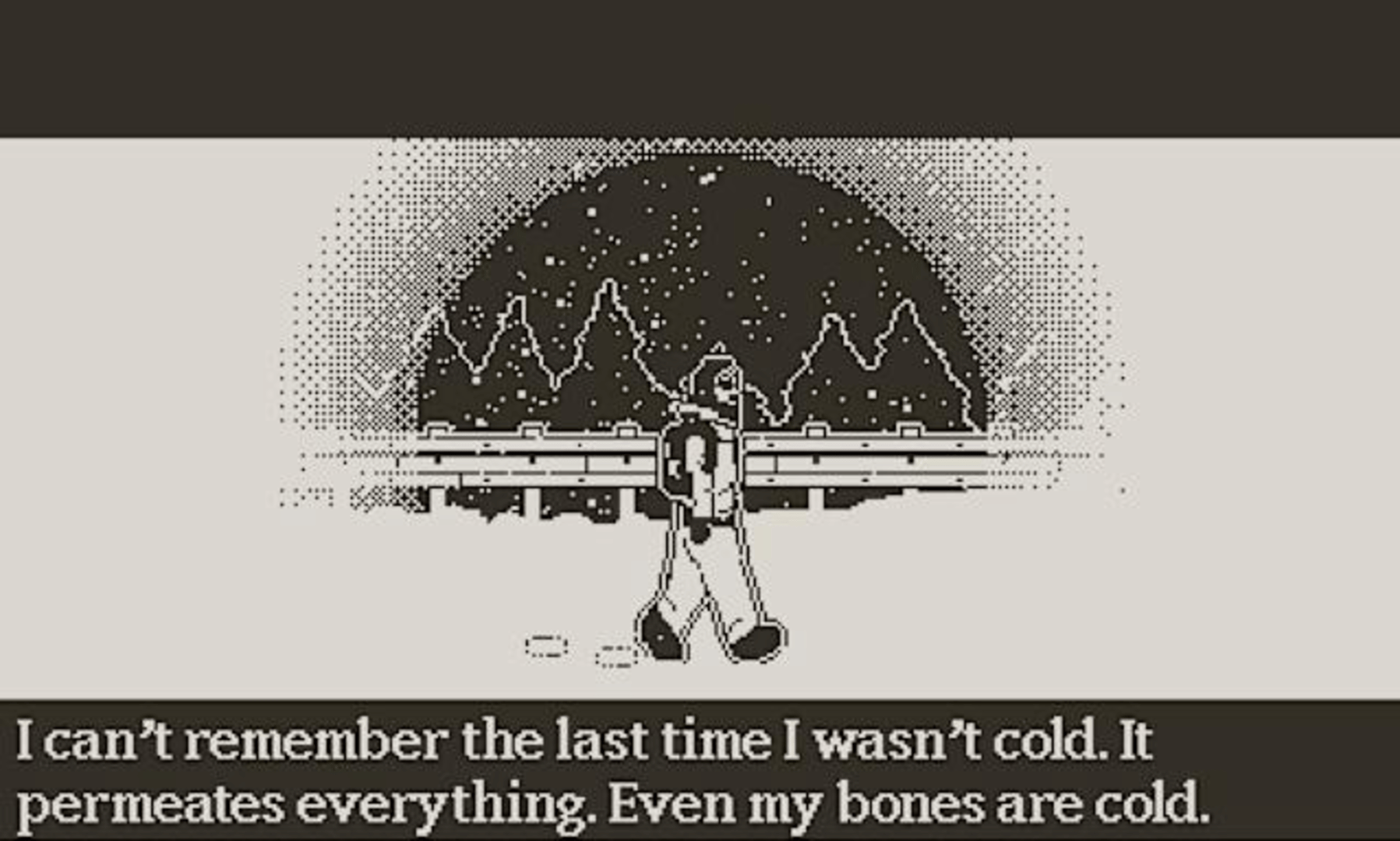 The Whiteout is a chapter based, narrative-driven adventure game that takes place in the not-too-distant future. You’ll play as a lone traveler in a dangerous and broken world: society has collapsed, food is scarce, and trust is not affordable.