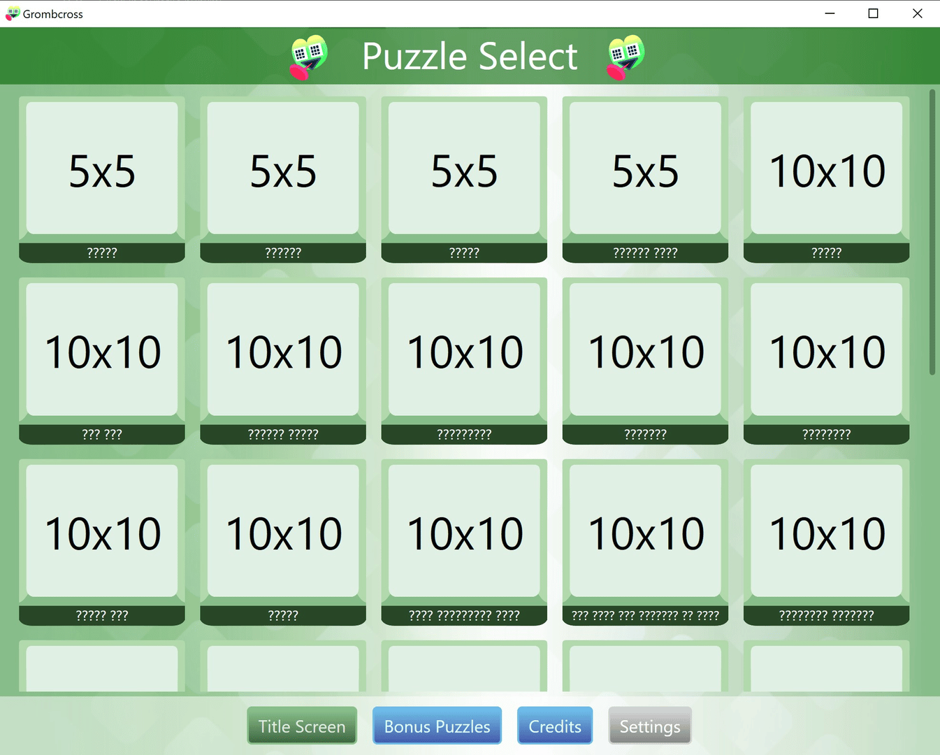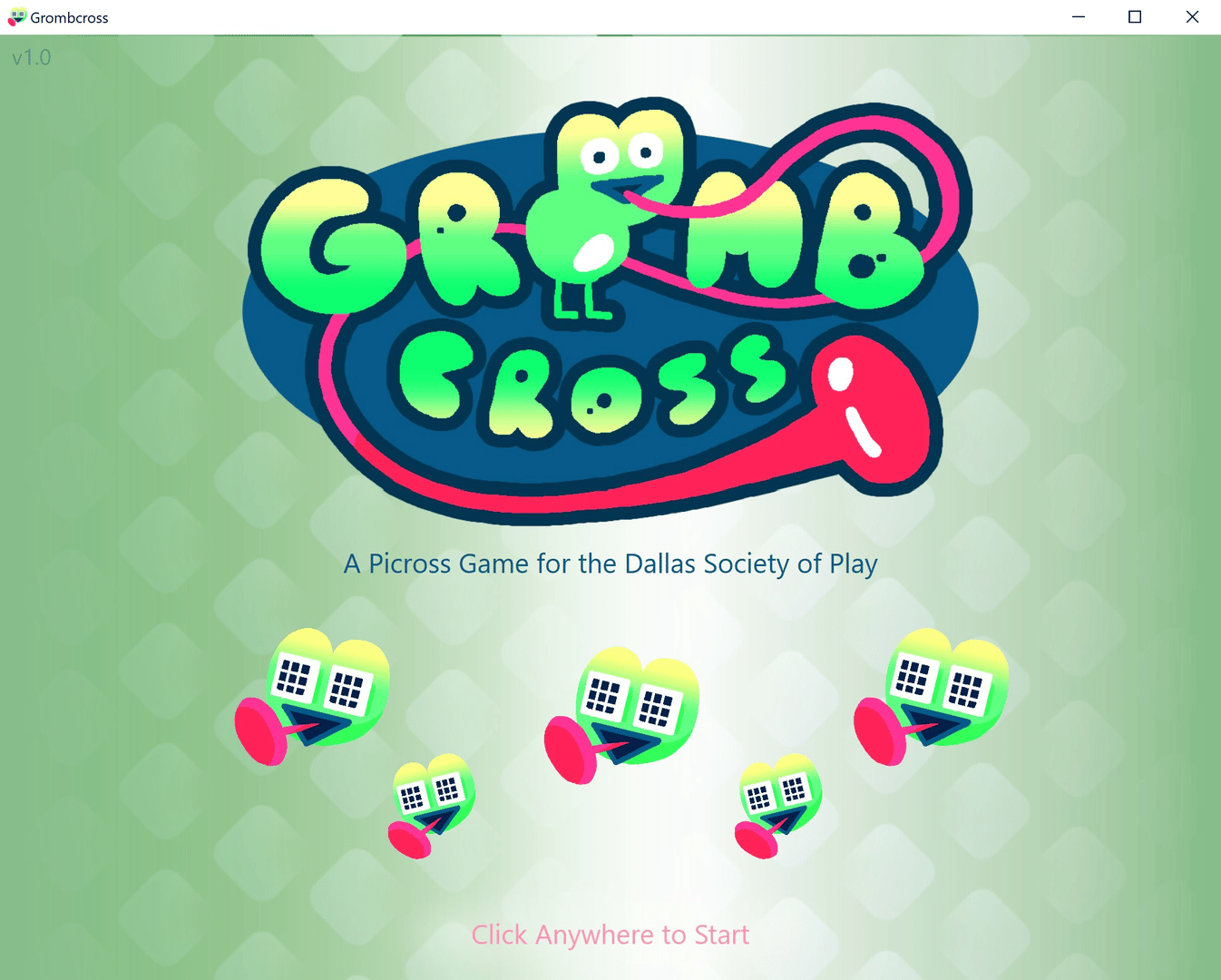 A picross game for the Dallas Society of Play! Each of the standard puzzles is a different piece of DSOP lore. There are also a variety of bonus puzzles included that are completely random.
