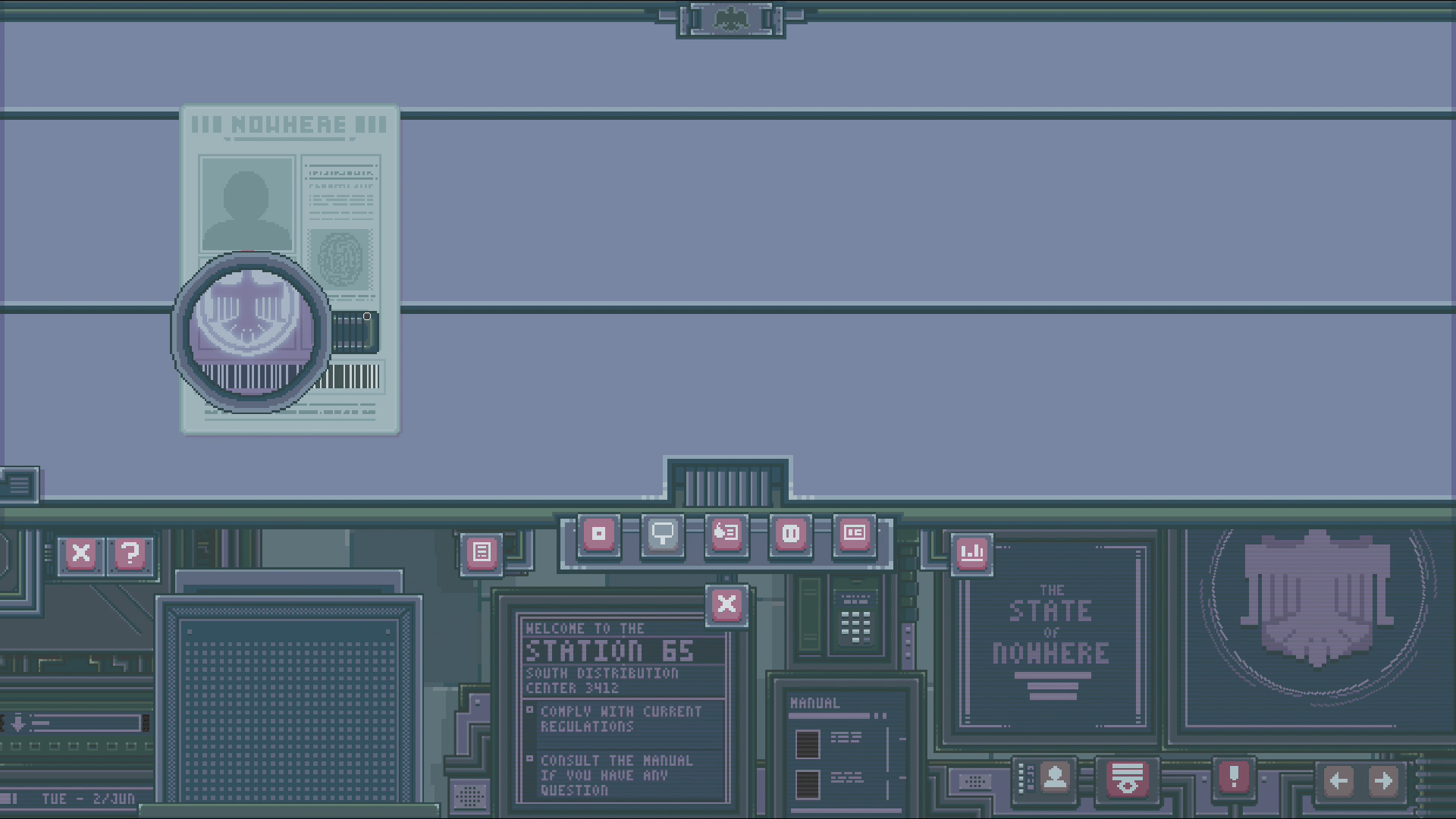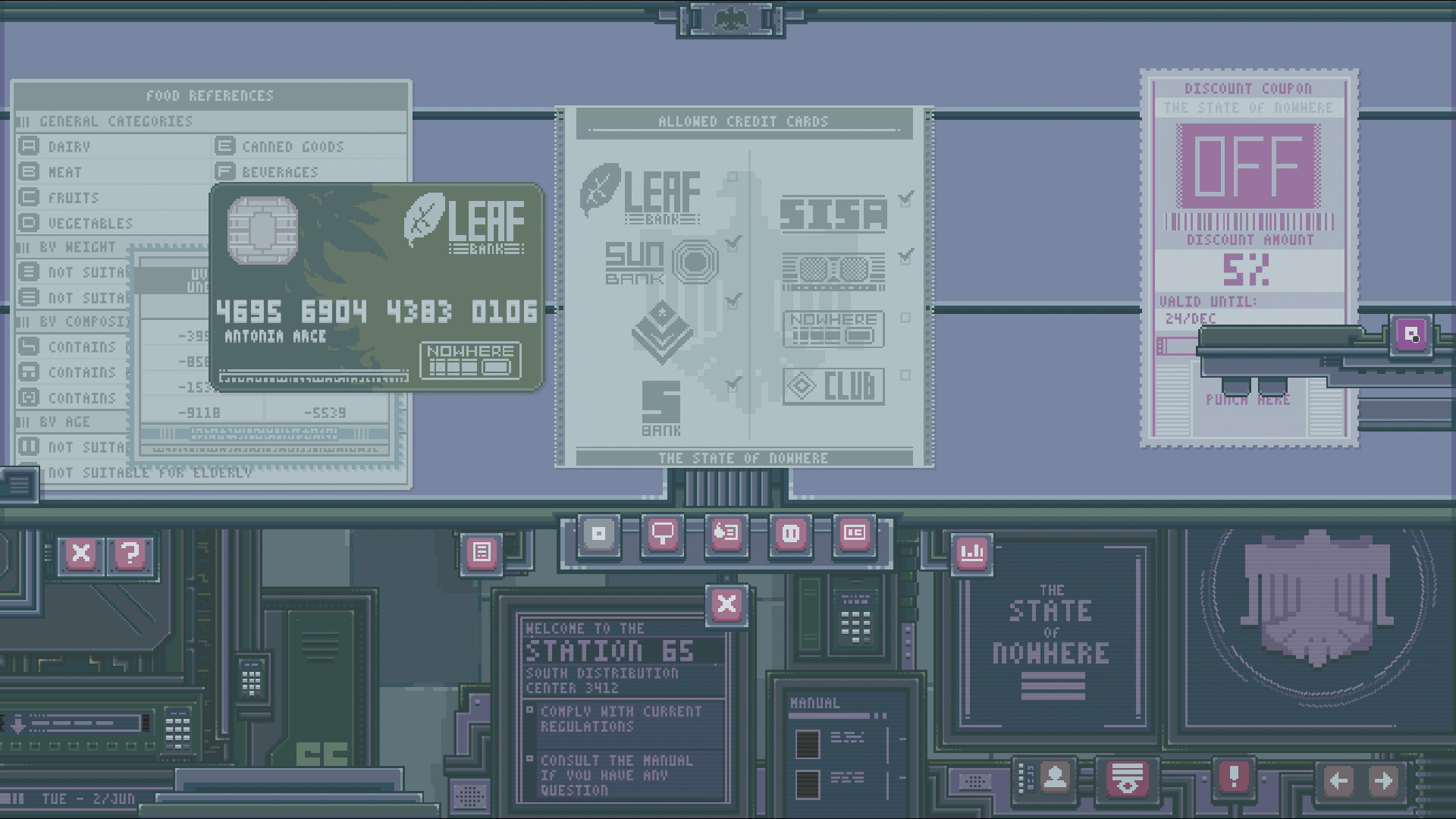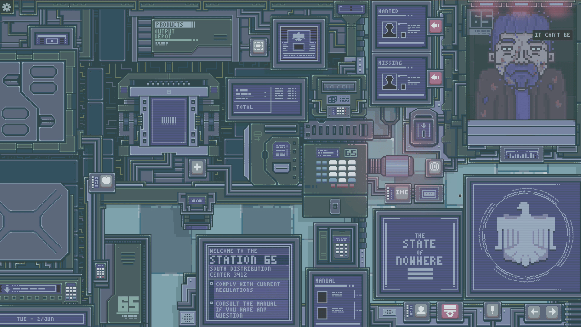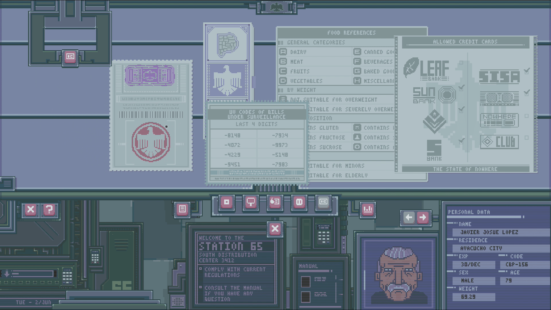 Assigned to station 65, your role as employee 100411 will be to serve and sell products to the people, exercising the controls the state deems necessary to keep the population in line