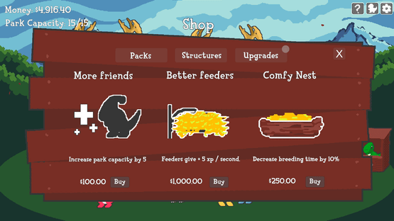 Dino Park is a cozy idle game about collecting dinosaurs! Watch your dinosaurs level up in real time, earning more money for your park. Create the perfect environment for your dinosaurs to increase the chance of discovering super rare variants! Can you collect them all?
