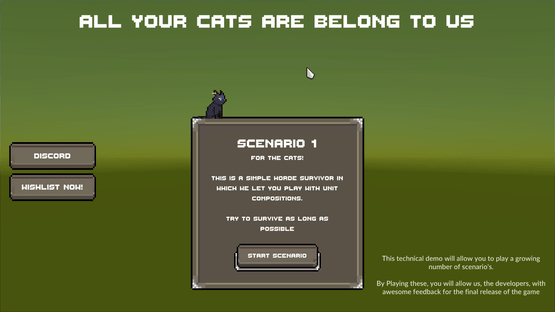 In All the cats are belong you will start off your quest with a small band of adventurers aiming to get back your precious cats. By slaying monsters and gathering experience, you will be able to upgrade your adventurers, gain more allies and, maybe, even gain a small foothold in the game world.